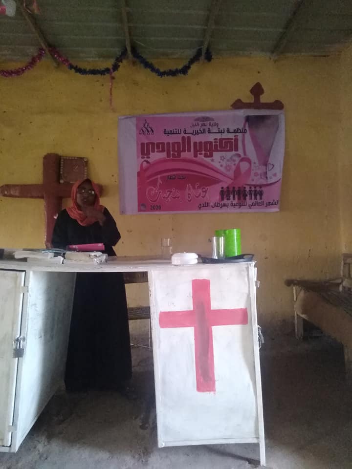 في إطار اهتمام المنظمة بالجانب الصحي وبمناسبة أكتوبر الوردي أقامت المنظمة عدة محاضرات توعويه عن سرطان الثدي بمناطق الحديبة واللويس جنوب الدامر. حيث شارك عدد مقدر من النساء في هذه المحاضرات ناقشت المحاضرات أسباب احتمال حدوث الإصابة بسرطان الثدي. وكيفية الاكتشاف المبكر لسرطان الثدي. كيفية عمل الكشف الدوري والفائدة من الكشف الدوري.