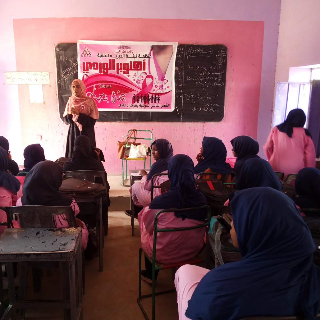فى اطار التوعية بسرطان الثدى من خلال شهر اكتوبر نفذت المنظمة العديد من الجلسات التوعية بسطان الثدى استهدفت جميع الفئات من النساء سواء فى المدارس او الاحياء او الكنائس